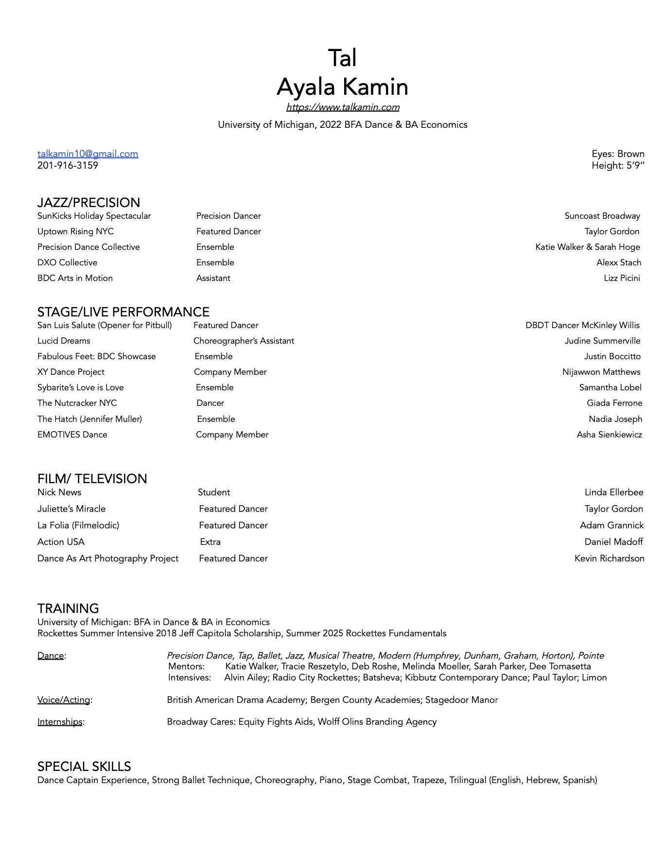 Graduated from University of Michigan in 2022 with BFA in Dance & BA in Economics